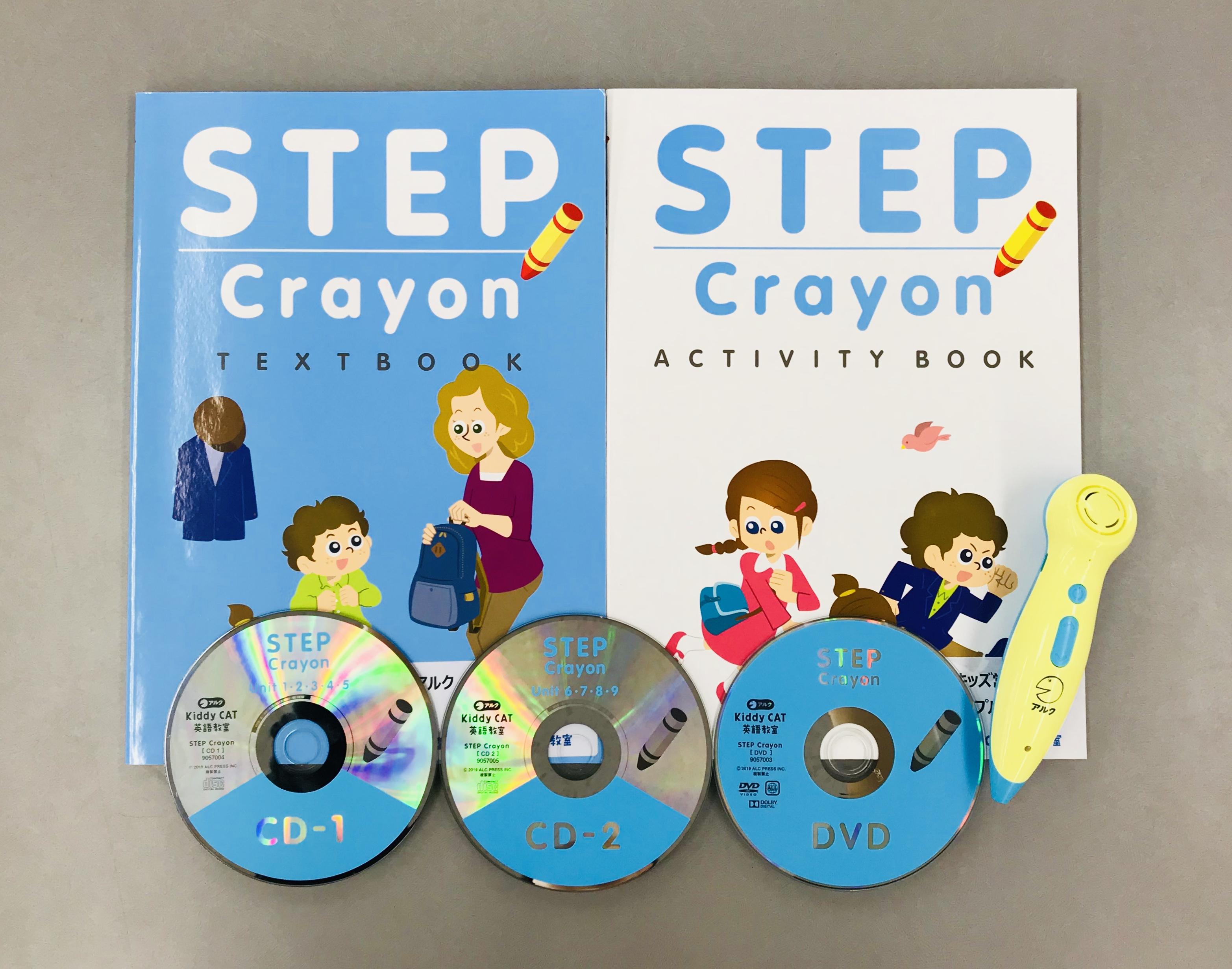 | 教材構成 | テキストブック(1冊)、アクティビティブック(1冊)、DVD(1枚)、CD(2枚)※1年間 音が出るペン(1本)※初年度のみ |